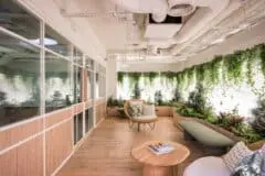 Throughout the scheme, planting plays a central part of the design story, adding an extra level of luxury and impact, from low- and high-level trough displays to smaller plants in decorative pots, dotted about the area. The result is a vibrant, exciting, and elevated space which surely must be one of the most beautiful and covetable workspaces in all of London.