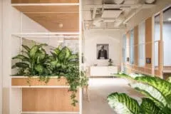 The aim was to add a unique ‘home away from home’ workplace experience and a sense of wellbeing. The ivy and cordyline remain true to the planting of the era.