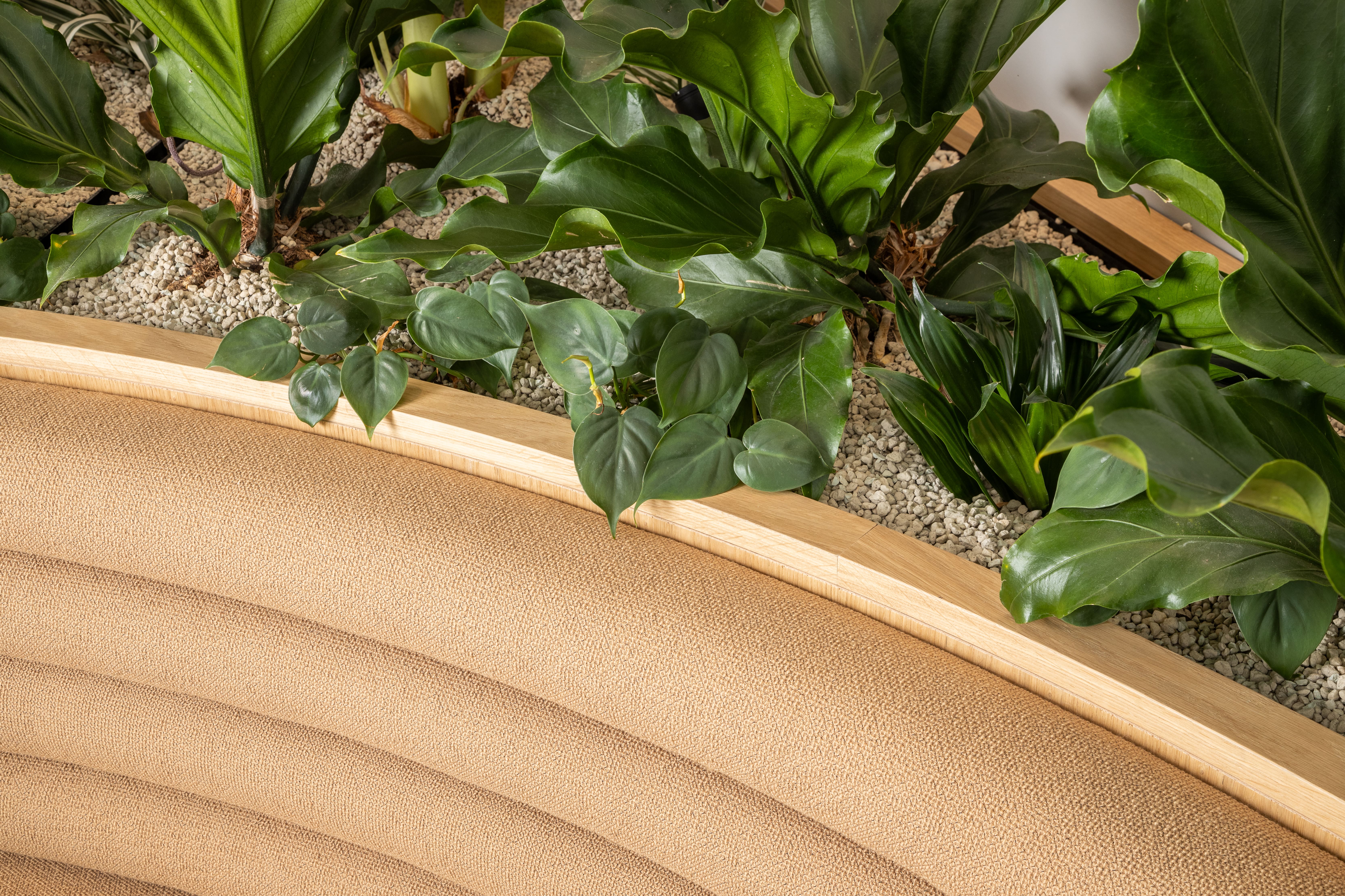 Our Ecoponic substrate played a key role beneath the surface, supporting plant health while aligning with the natural theme. Joinery planting was layered and natural, designed to mirror overlapping forms of growth rather than overly tidy layouts. Colour highlights were subtle and intentional, acting as accents rather than decoration.