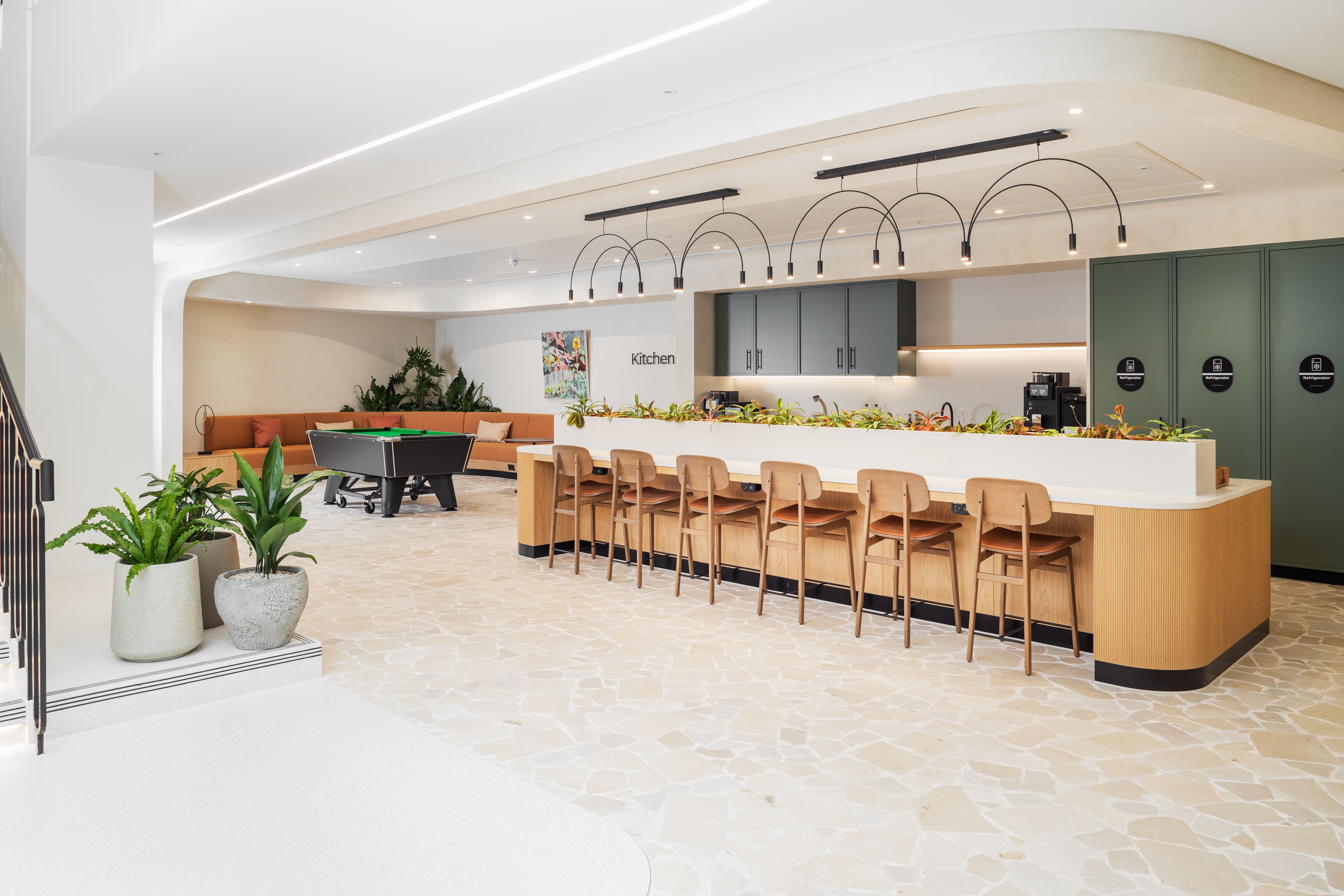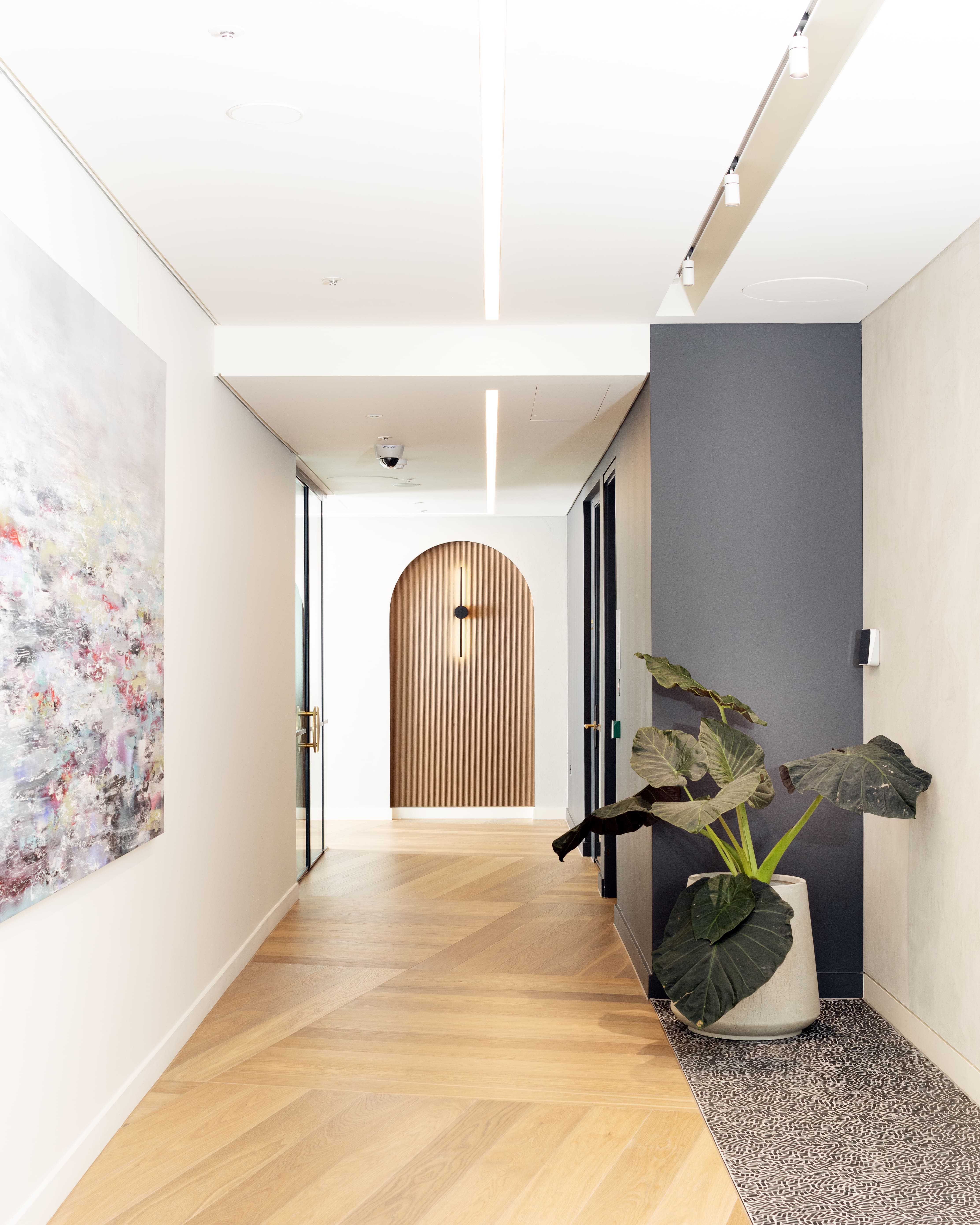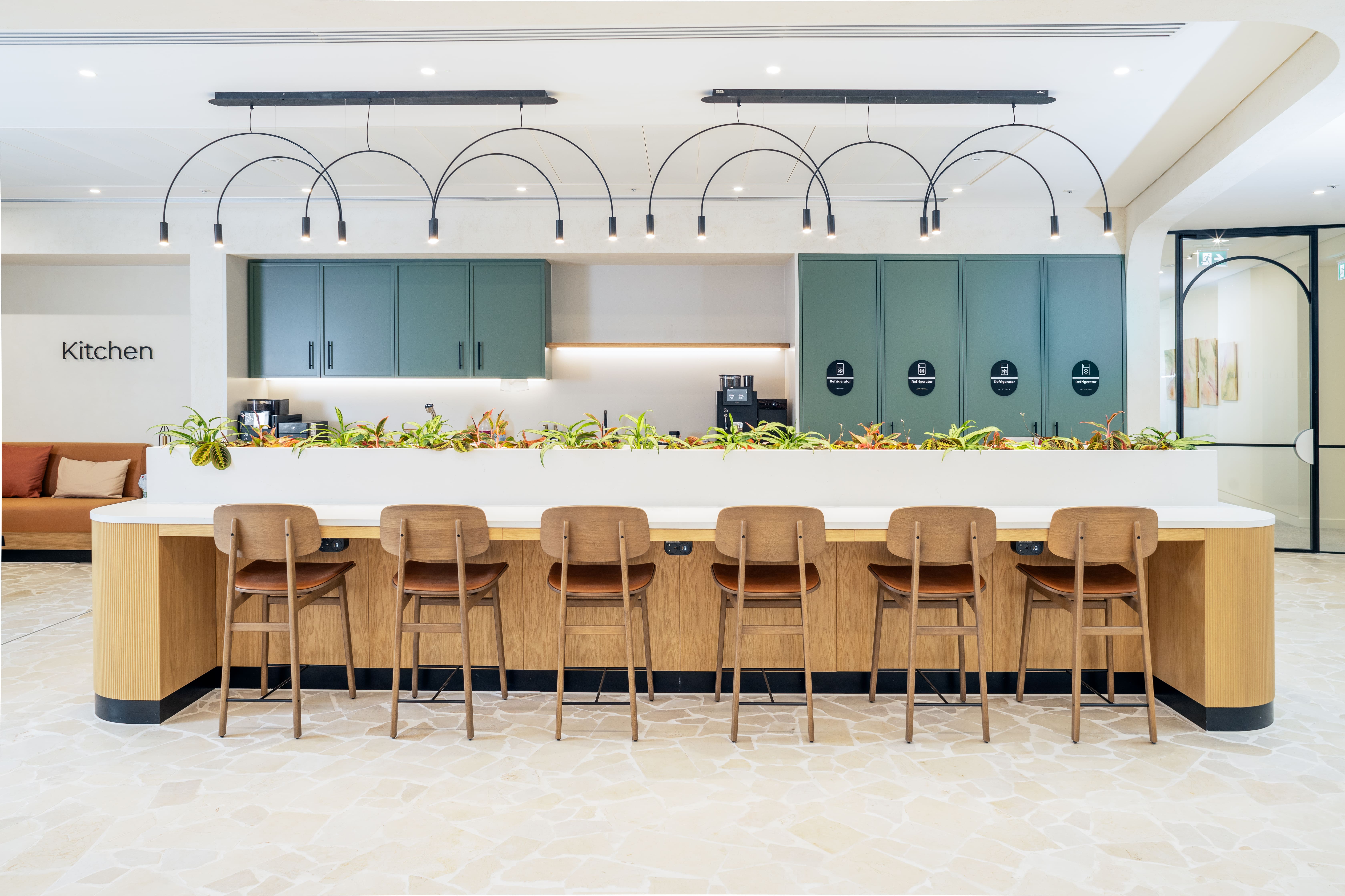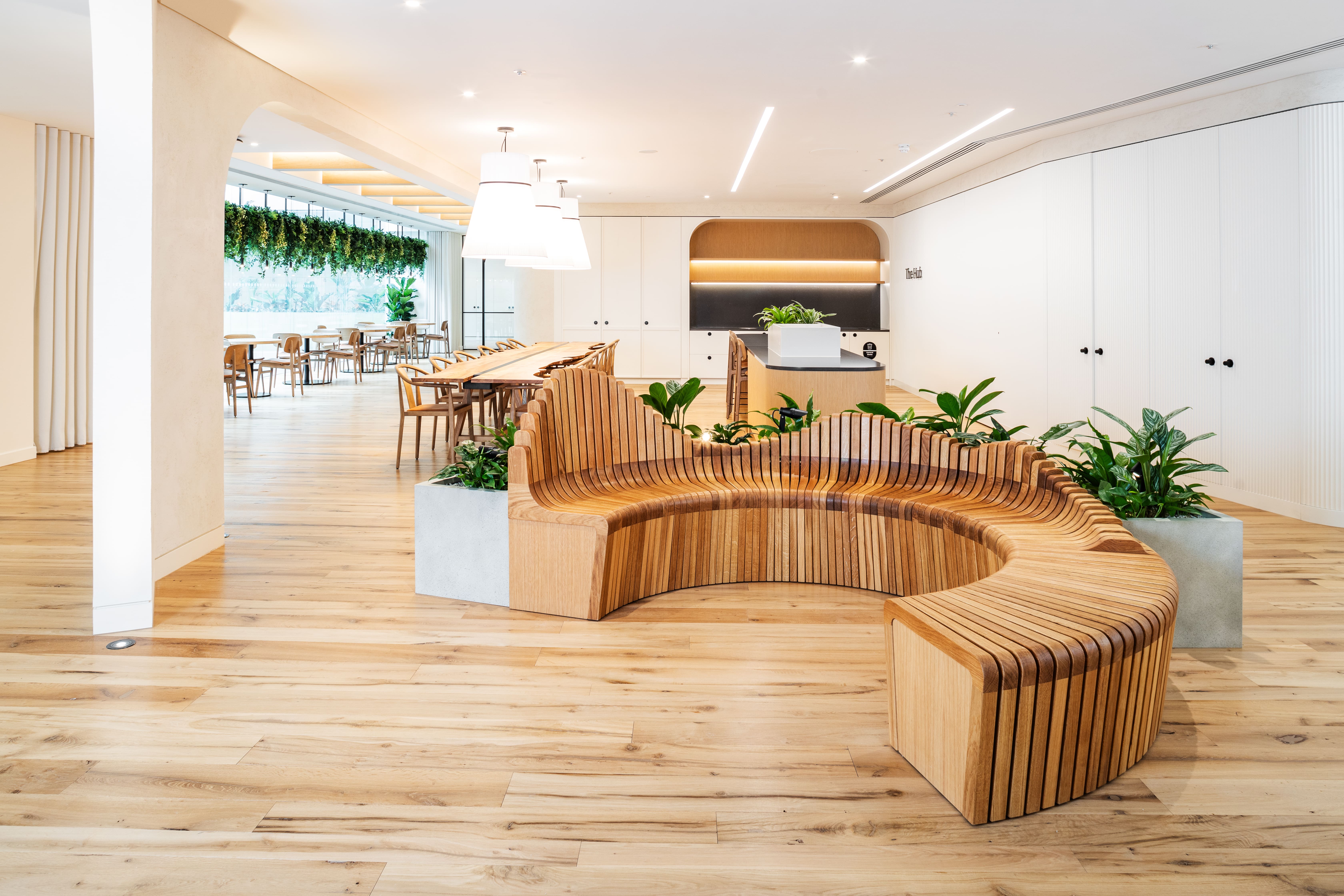 Integrated Joinery Planting: From banquette seating to shelving and storage, planting was built in from the start. It adds rhythm and softens the formality of a legal workplace.