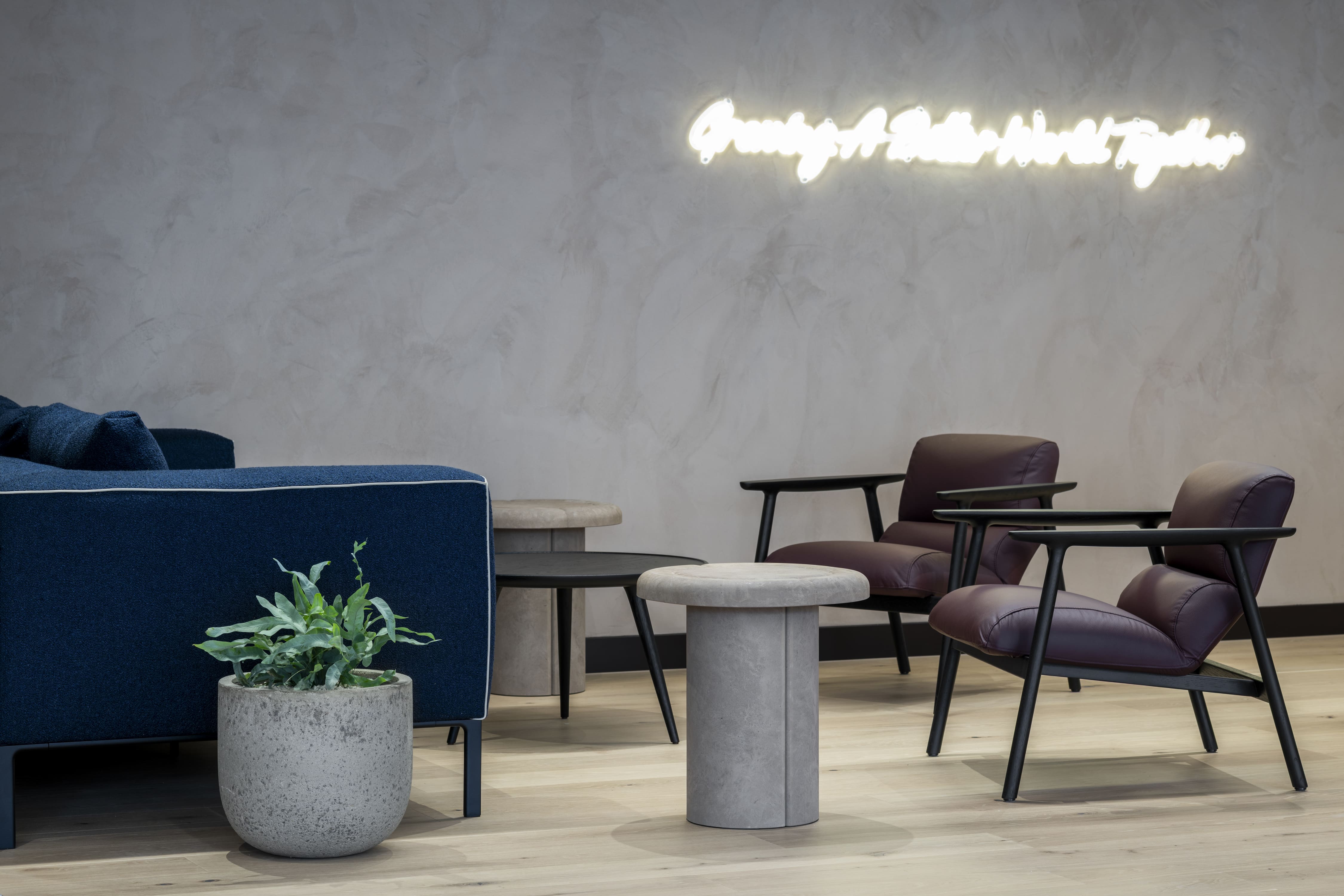 When the business committed to a full relocation and redesign, the goal was to create a workplace that balanced brand expression, sustainability, and employee wellbeing. The interior architecture was developed to reflect modern ways of working, with an emphasis on collaboration, transparency, and connection to nature.